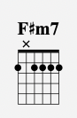 Finally, we have F#m7. This chord is the one bar chord played in 2nd position. It also uses a Jimi Hendrix-style thumb on the 6th string like this: