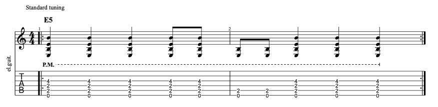 E5 is a big 4-string power chord played like this: