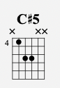 C#5 simply shifts the previous chord (B5) up 2 frets like this: