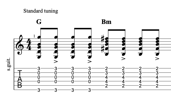 Notes: G, B, D