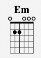 Em is a beautiful open-sounding chord. It uses all 6 strings like this: