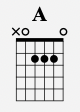 Finally, we have A. This one is played from the 5th string down like so: