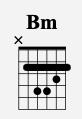 Bm is played as a bar chord in 2nd position like this: