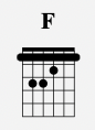 F is a bar chord played in 1st position and uses all 6 strings like this: