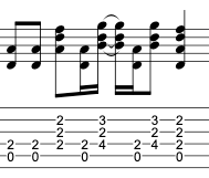 D/A is played on the same strings as A (from 5 down) but with a slight change: