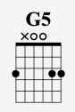 Finally, we have G5. G5 is an open position power chord using 5 strings like this: