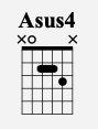 Finally, we have Asus4. This chord has a beautiful, suspended sound to it. I play it from the 5th string down like this: