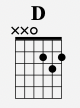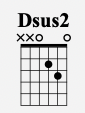 Dsus2 is like the D chord, but this time we’ll make the 1st string open like this: