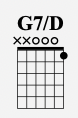 D7 is another bluesy chord. This one is played from the 4th string down like so: