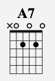 Same goes for the A7 chord, which is implied via the riff. This one I play from the 5th string down like so: