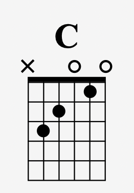 After those 3 chords, then we will head down to the open position and play a standard C like this: