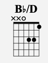 Finally, we have Bb/D. This chord gets a very James Bond type of sound. It’s also played from the 4th string down as well, like so: