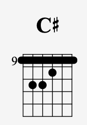 And then move it up two more frets (now on the 9th fret) for C# like this: