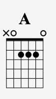 A major is a perfect compliment to the last two chords. It’s played from the 5th string down like this: