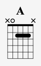For the A chord, I use just my index finger in the fretting hand. This will get you a great rock sound. I mute the 6th and 1st strings. And play strings 5 through 2 like this: