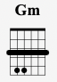 Gm can be played as a bar chord in the 3rd position. Here we’ll play all 6 strings like this: