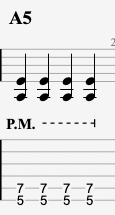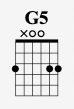 Finally, we have G5. I play this chord as an open power chord using 5 strings like this: