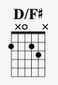 I play D/F# using my fretting hand thumb. If that feels uncomfortable for you, you can also play it without the fretting hand thumb as well. Here are the notes: