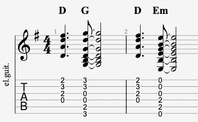 However, the main guitar uses a capo on the 4th fret, so that would change the notes to: