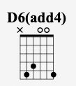 D6(add4) looks similar to a C chord, but it’s shifted up two frets like this: