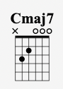 Cmaj7 is the first chord you hear, and it’s played like a standard open position C chord. However, I lift off the index finger and make the 2nd string open like this: