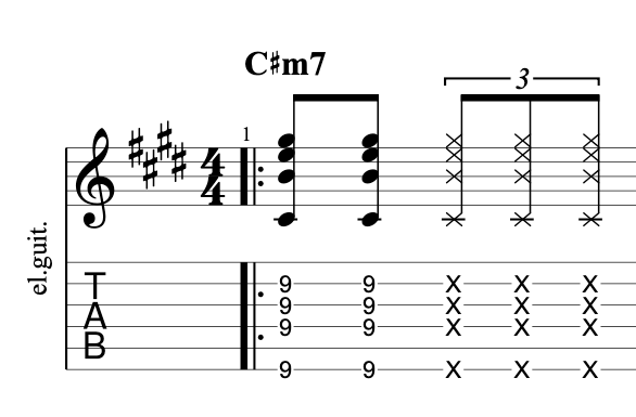 C#m7 is a very common 4-note jazz voicing all played on the 9th fret like this: