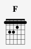 Finally, we have the F chord which is the one bar chord and is played like this: