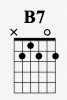Finally, we have B7, another great bluesy chord that can be played in open position like this: