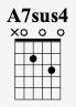 Function: V7sus4 chord — the dominant (V) chord (A7) with a suspension. The 4th (D) replaces the 3rd (C#) temporarily, creating tension that usually resolves to A7.