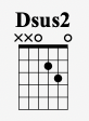 Dsus2 is played in the standard (campfire) open position; however, I add in the open 1st string like this: