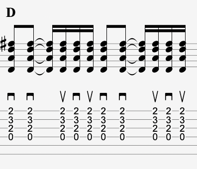D is played from the 4th string down like this:
