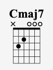 Finally, Cmaj7 takes the above C chord, and lifts up the index finger in the fretting hand like this: