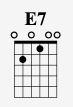 E7 is just like the E chord above; however, this time we’ll remove the ring finger: