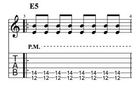 Here’s an example of a strumming pattern using palm-muting in the style of “Paranoid”: