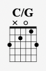 C/G keeps the 2 fingers fretting down from the previous G chord, but adds 2 more like this: