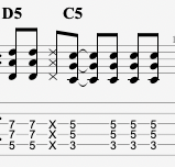 This gives the tune a strong and consistent forward motion. A great option is to strum this rhythm using an alternating strumming pattern like this:
