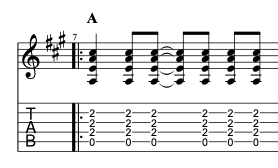 Let’s take a closer look at how these (main) chords relate in the key of A. Starting with…