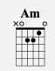 Function: Am is the ii chord in G major. It is minor and functions as a pre-dominant chord, often leading naturally to the V chord (D or D7b9 in this song), creating tension that wants to resolve back to G.