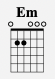 Function: Em is the vi chord in G major, sometimes called the relative minor. It shares two notes with G (G and B), making transitions between G and Em smooth. It adds a reflective, softer color to a progression.