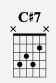 C#7 looks similar to a C. But I add the pinky finger in the fretting hand and shift it up one fret like so: