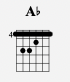 Ab is a bar chord in 4th position and uses all 6 strings like this: