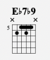 Finally, we have Eb7b9. This one is played just like D7b9 but shifted up one fret, like so: