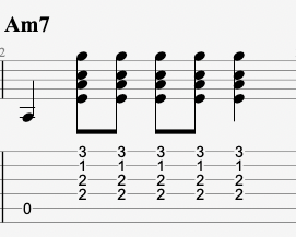 Function: This is the vi7 chord (A minor 7) in the key of C major. It’s the relative minor of C and shares many of the same notes. The minor 7th (G) adds a soulful, jazzy feel and helps it flow smoothly into the D7 chord.