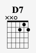 Function: This is the V7 of V (secondary dominant). In the key of C, D7 leads strongly to G7, which in turn resolves to the tonic C. The F# note is the leading tone that gives the D7 its pull toward G7. This chord is briefly borrowed from the key of G major.