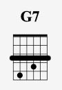 Function: This is the V7 chord in C major, the dominant seventh. It creates strong tension that resolves back to the tonic C or C7. The G7 is central in blues and jazz progressions, driving the harmony toward resolution while adding a classic dominant seventh flavor.