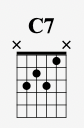 Function: This is the I7 chord in the key of C major, acting as a dominant-style tonic. The added minor seventh (Bb) gives it a bluesy sound, which also makes it move naturally toward the IV7 chord (F7) in classic blues progressions.