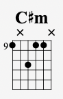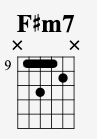 Finally, we have F#m7, which is a slightly jazzier chord played in 9th position like this: