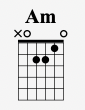 Am is played from the 5th string down in a standard (campfire) position like this: