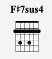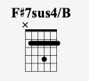 Finally, F#7sus4/B uses 2 fingers in the fretting hand, and is played from the 5th string down like so: