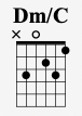 Dm7/C keeps the previous Dm shape, but lowers the bass note down to C on the 3rd fret, like this: